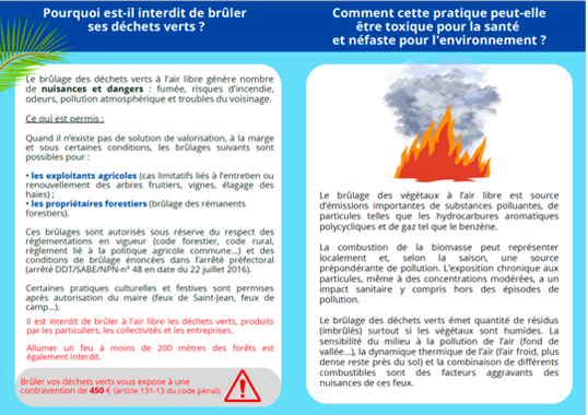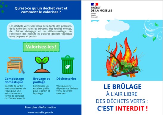 Dans le Département de la Moselle, le brûlage des déchets verts est interdit par arrêté préfectoral DDT/SABE/NPN-n° 48 en date du 22 juillet 2016